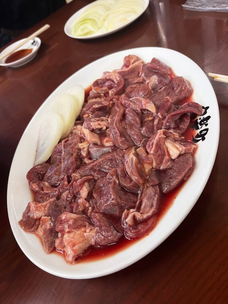 こちらが、待ちに待ったジンギスカン!タレが最高で。他にも、ホルモンうどんなど別の料理を頼んだのに、ジンギスカンを2皿ほどおかわりをしました。ここは、北海道い来たらまた訪ねたいお店の一つです。地元の人がうらやましい~