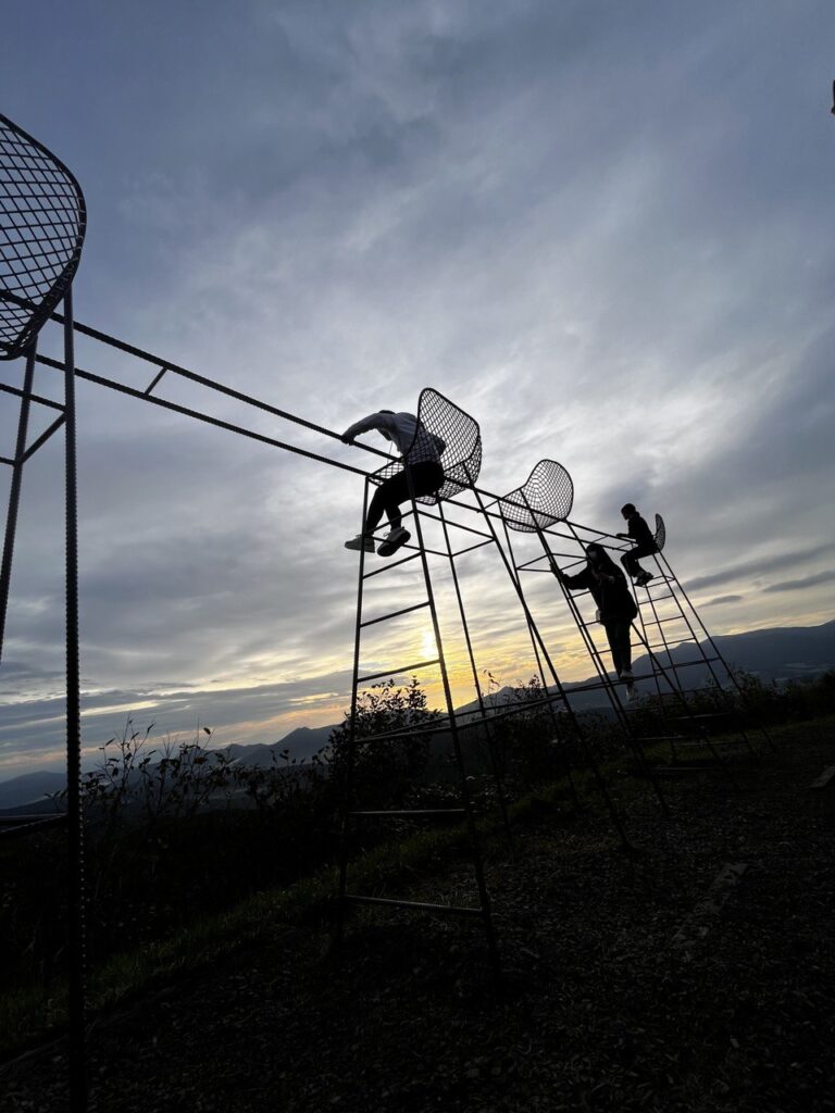 雲海テラスには、超高い2人海苔の椅子があったりして、みんな写真をとっていました。